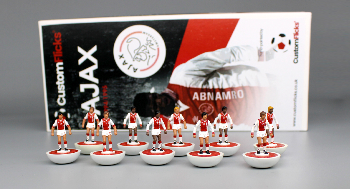 All teams are 100% hand-painted to high quality and detail. I do not use transfers or decals for the detailing, just a very small brush! The teams can be boxed in a fully bespoke stickered CustomFlicks designed box (standard Subbuteo size) or a 1970’s traditional, reproduction box. Figures are lightly matt varnished to keep them protected from the usual game wear and tear.